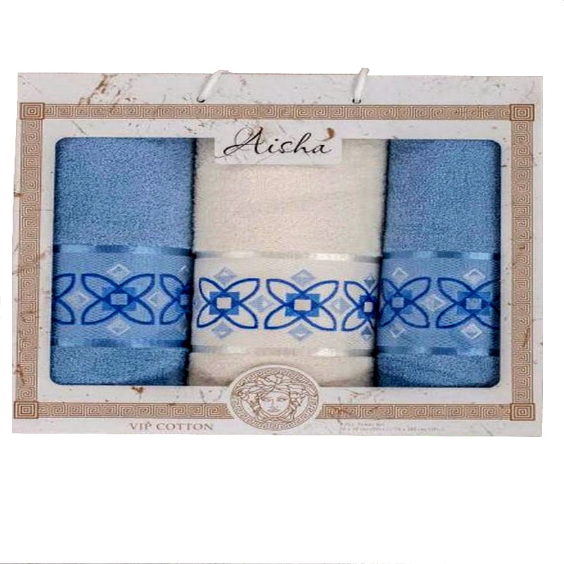 Махра, это натуральная ткань, поверхность которой состоит из ворса. Махровая ткань обладает легким массажным эффектом, не вызывает раздражения на коже поэтому, полотенца махровые набор Аннета пользуются большим спросом. В набор входят два маленьких полотенца и одно полотенце побольше. Цвет двух полотенец приятный голубой, а одно полотенце белого цвета. Рекомендуем приобрести набор махровых полотенец в нашем магазине в подарок. Полотенца отличного качества.